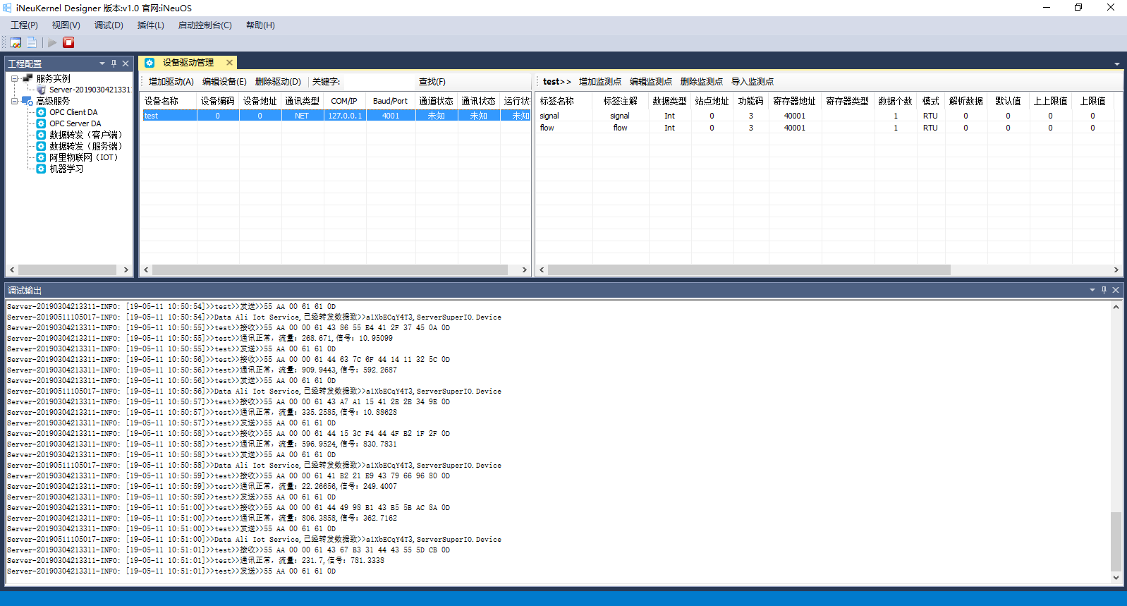 - 支持一个设备驱动,同时支持串口和网络两种通讯方式,可以监视IO通道数据。