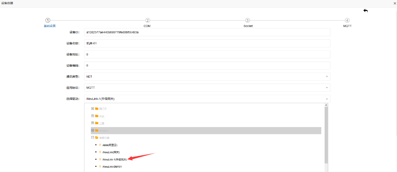 2. 机床数据采集的网关(iNeuLink)与iNeuOS工业互联网操作系统对接