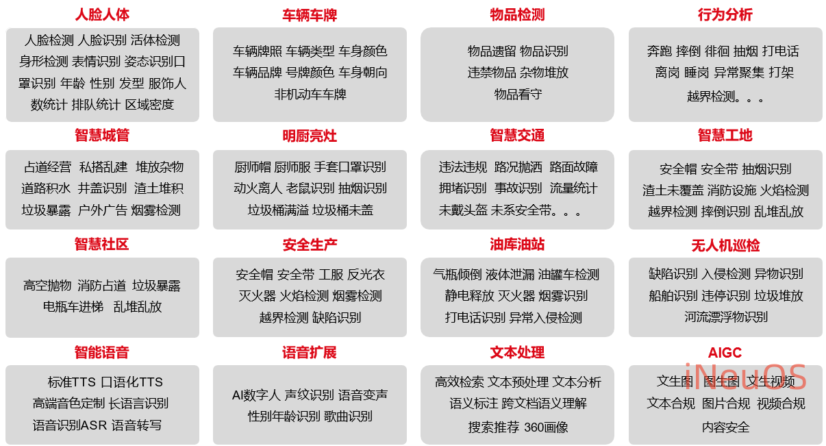 汇聚 300+AI原子能力,覆盖 50+行业应用场景,支持算法定制,场景识别如下图:
